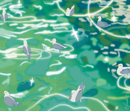 Seagull on water postcard print - Little Forest Art Prints (LFP 005)
