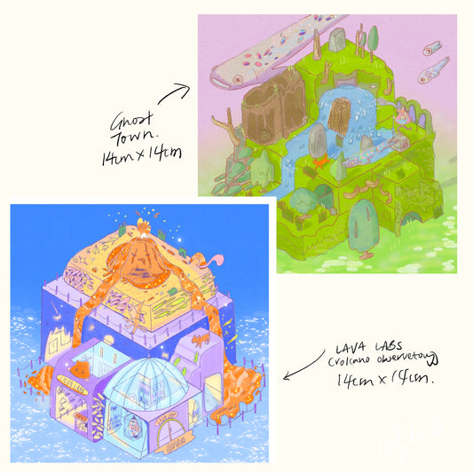 Lava Labs Volcano observatory Isometric art print Large - Little Forest Art Prints (LFP 002)